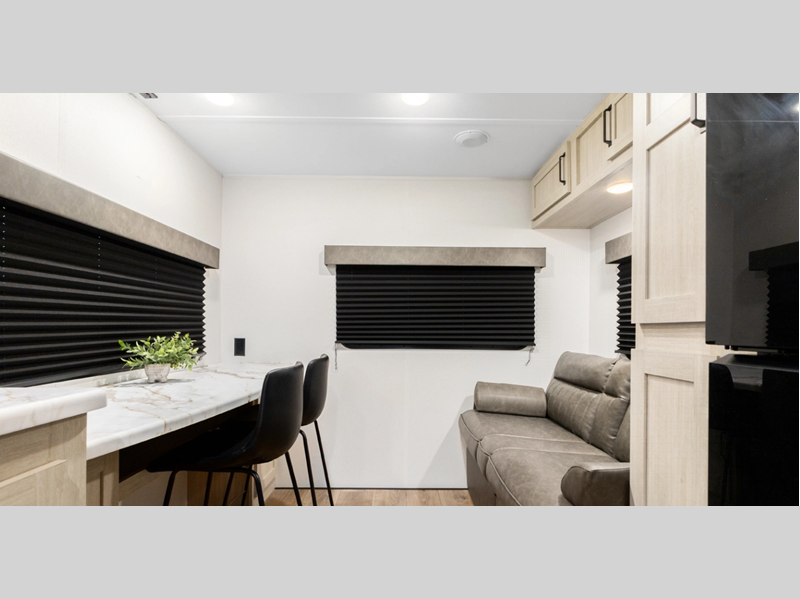 Whether you choose a single axle or tandem axle model, you're sure to find a Puma Camping Edition to best fit your needs. They feature 5/8" tongue and groove plywood flooring and a front diamond plate for protection against rock and debris on the way to the campground. Inside, the Thermofoil countertops with a smooth drop edge will be easy to keep clean, and the 13,500 BTU GE A/C will keep you comfortable during those hot camping months.