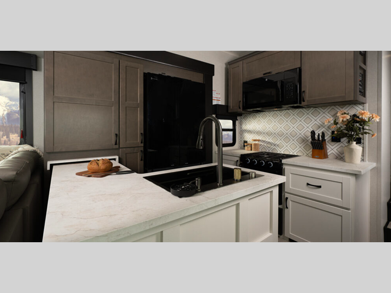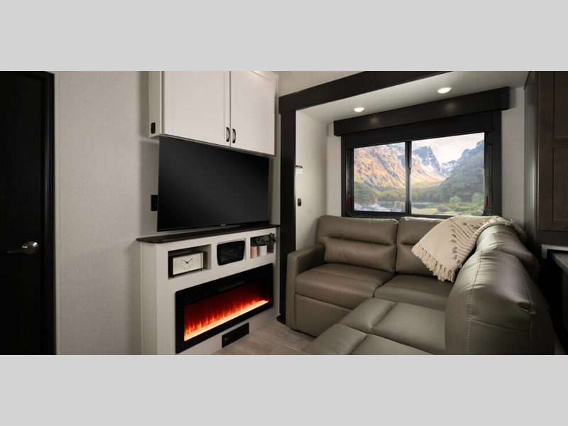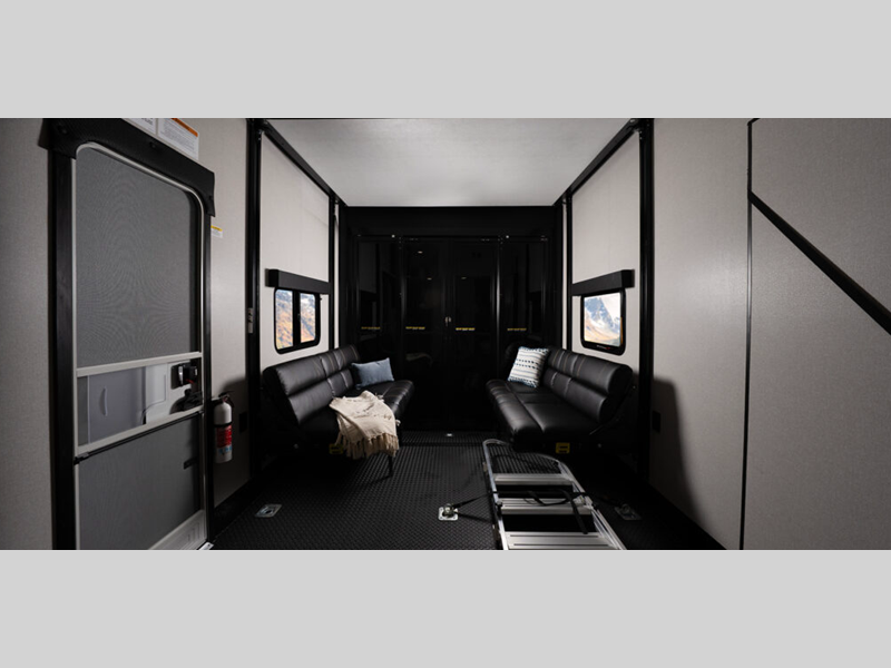 Some of the other top features that will catch your eye are the TrussTXL Roof System with Alpha roof membrane provides a durable and leak-resistant roof. At the same time, the Therma Shield zero-degree tested weather protection ensures that your Cyclone toy hauler fifth wheel can withstand even the most extreme temperatures. In the interior, residential-finished dovetail-jointed drawers throughout provide ample storage and a touch of luxury. Also, you can enjoy your favorite music with the touchscreen Bluetooth stereo with 4 speakers!