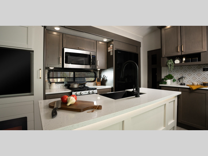 Heartland Milestone fifth wheel 39TB highlights: Loft 4K Smart LED HDTV Island ... more about Milestone 39TB